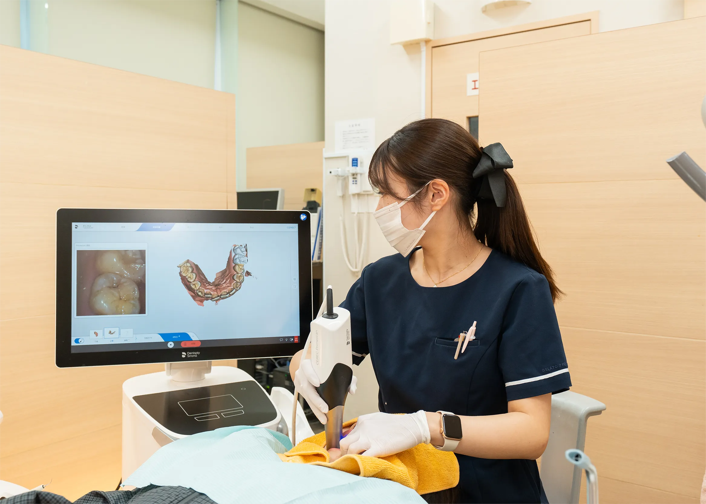 より精度の高い診断・治療を行うために、口腔内を立体的な画像で確認することができる歯科用CTや、 口腔内をスキャンすることで歯型のデータがとれるプライムスキャナーなど、豊富な先端設備を導入しています。
