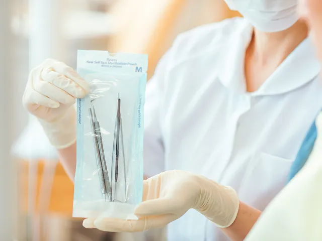 高圧蒸気滅菌機による治療器具の滅菌はもちろんのこと、使い捨て製品の使用、院内全体にきれいな空気が行きわたる処理能力に優れた大容量の医療用空気浄化装置「メディカルライトエアー」が稼働しています。