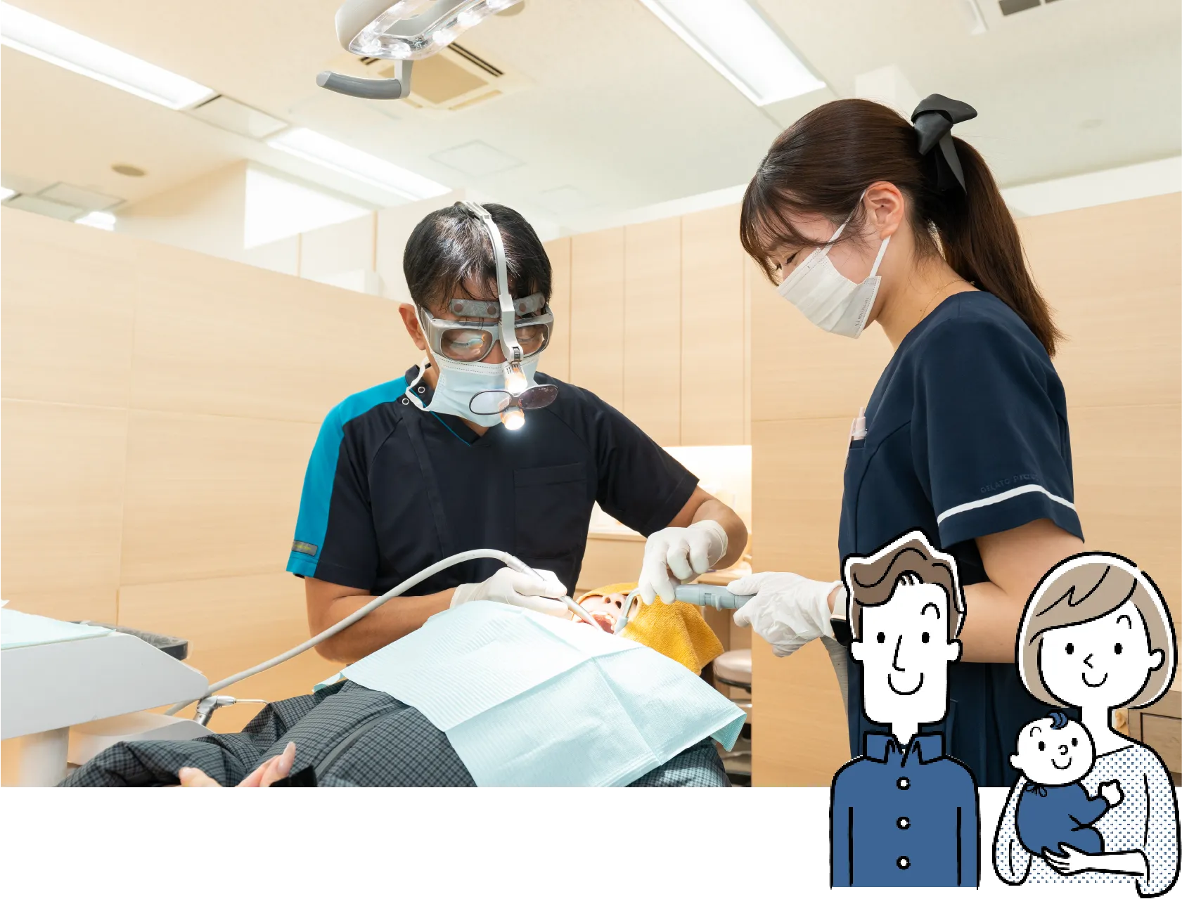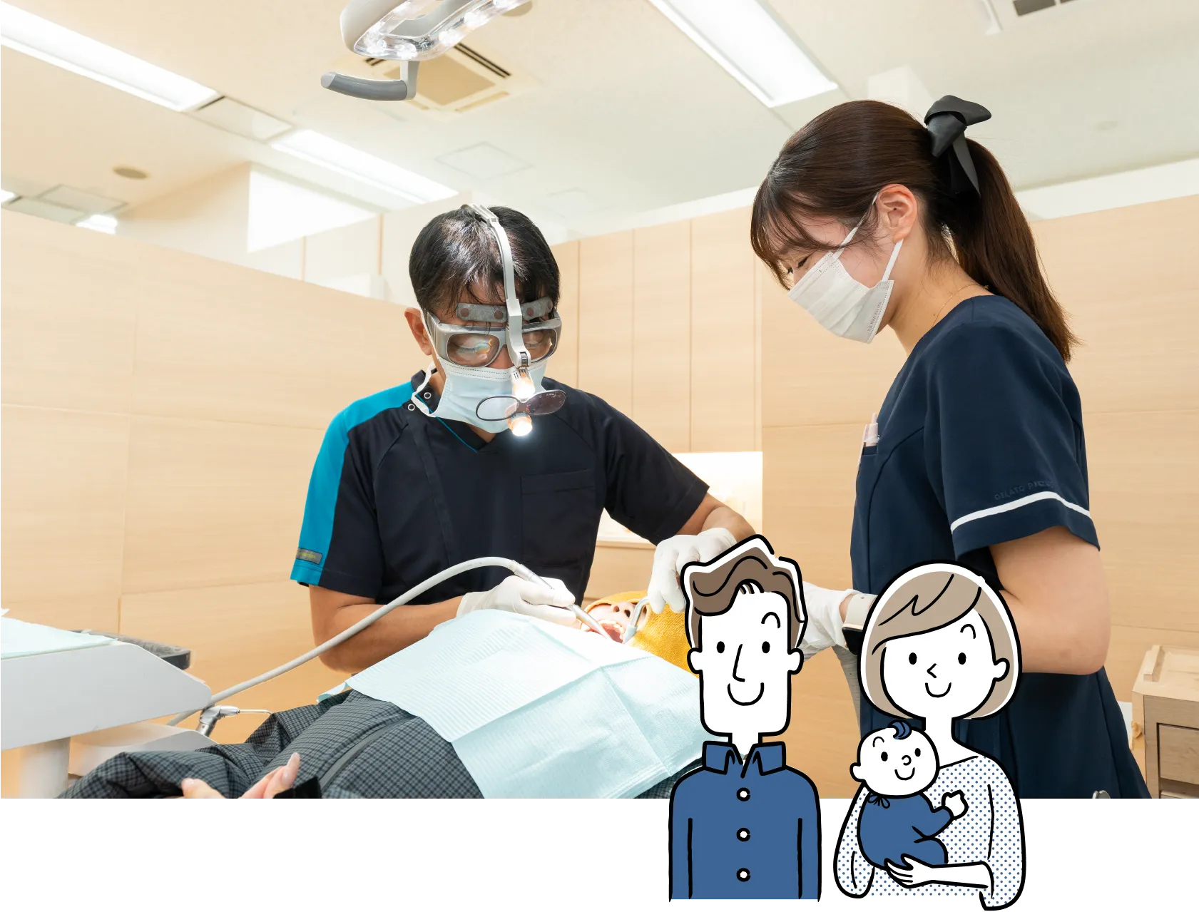 虫歯や歯周病の治療からインプラントやホワイトニングまで、幅広い治療を行っております。 お口のことでお悩みがあれば、どんなことでもご相談ください。